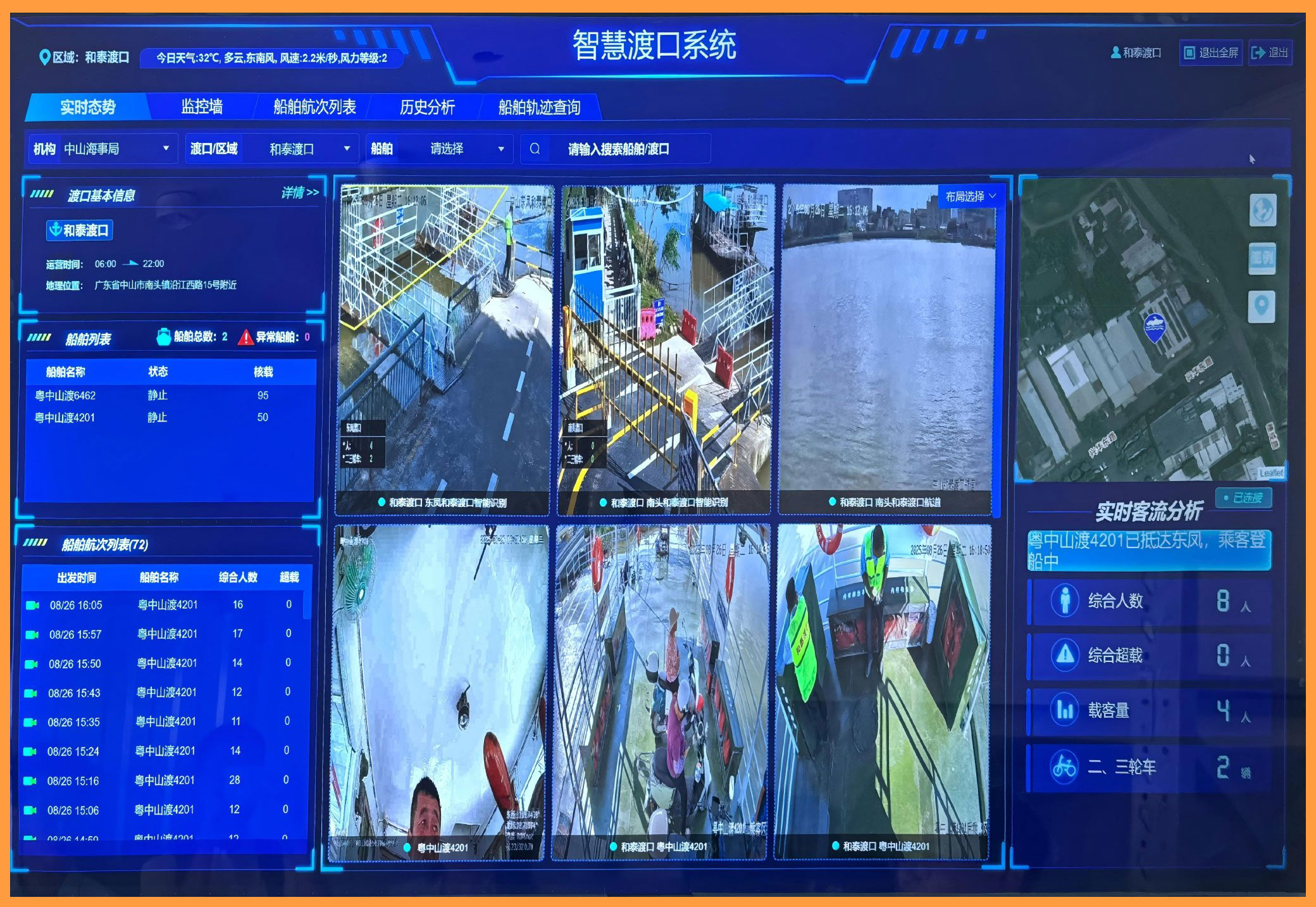 安全管理智能化: 对渡船、航道、码头区域进行全天候监控,主动预警风险。