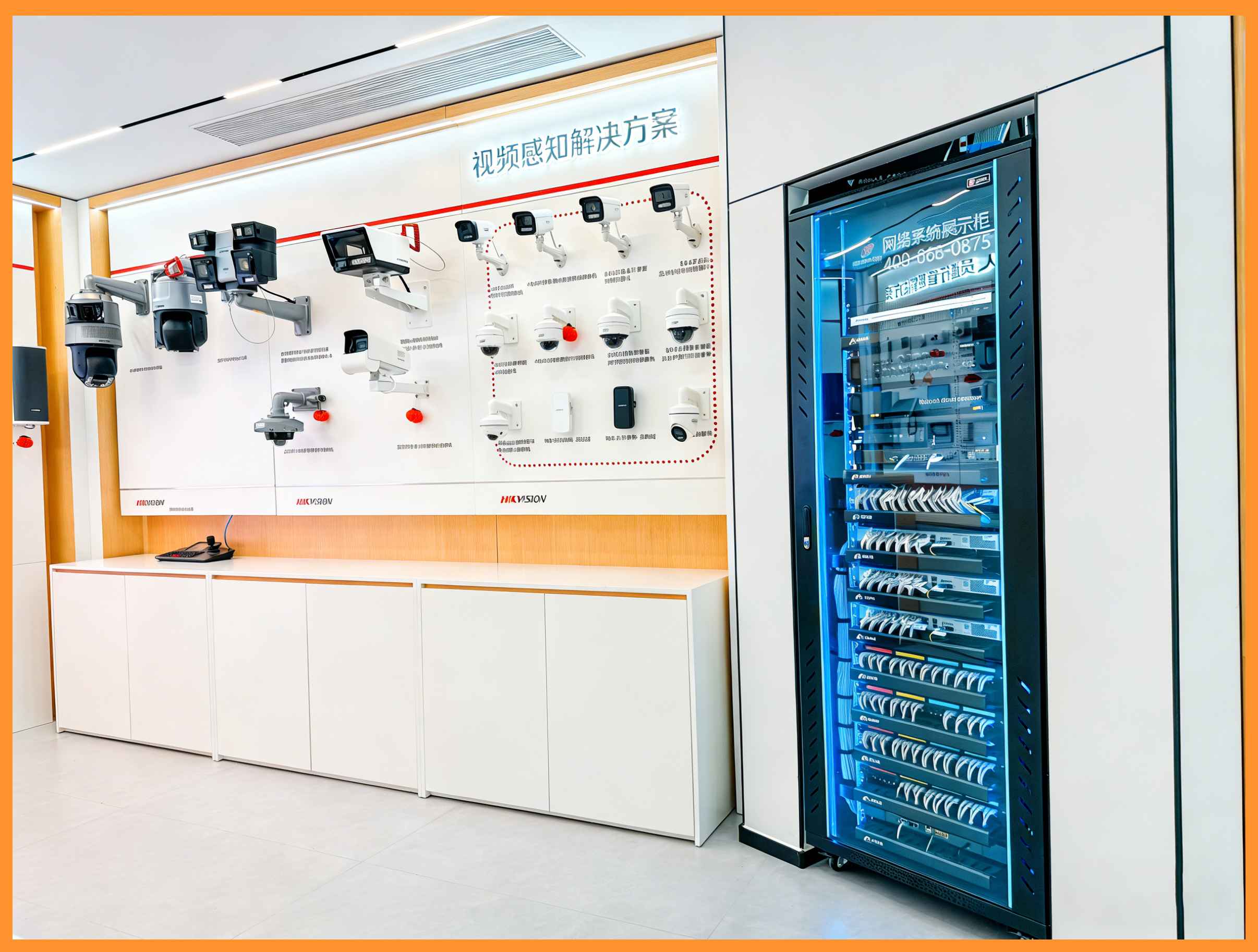 安防管控是算力中心物理安全的核心保障,整合视频监控、门禁管理、入侵报警、环境监测四大模块,实现全方位、全天候安全管控。全程选用海康威视一线品牌安防设备,覆盖算力中心机房出入口、机柜区域、设备间、走廊等全角落,实时监控场地动态、严控人员出入、监测机房温湿度与设备运行环境,异常情况及时预警,全方位守护算力中心设备与数据安全。