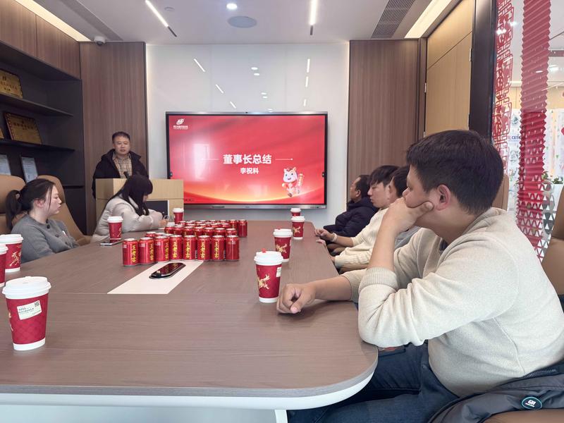 李总在会上发表年度总结讲话,解读公司 2025 年整体经营情况,深入分析市场机遇与挑战,为公司 2026 年发展擘画清晰蓝图,为全体员工注入奋进动力。会议还设置了新春红包派送环节,李总为大家送上新年祝福,现场洋溢着温馨的节日氛围。